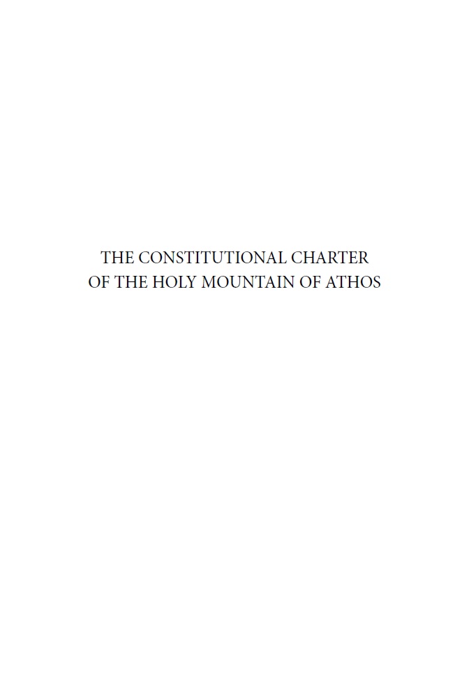 The Constitutional Charter Of The Holy Mountain Of Athos